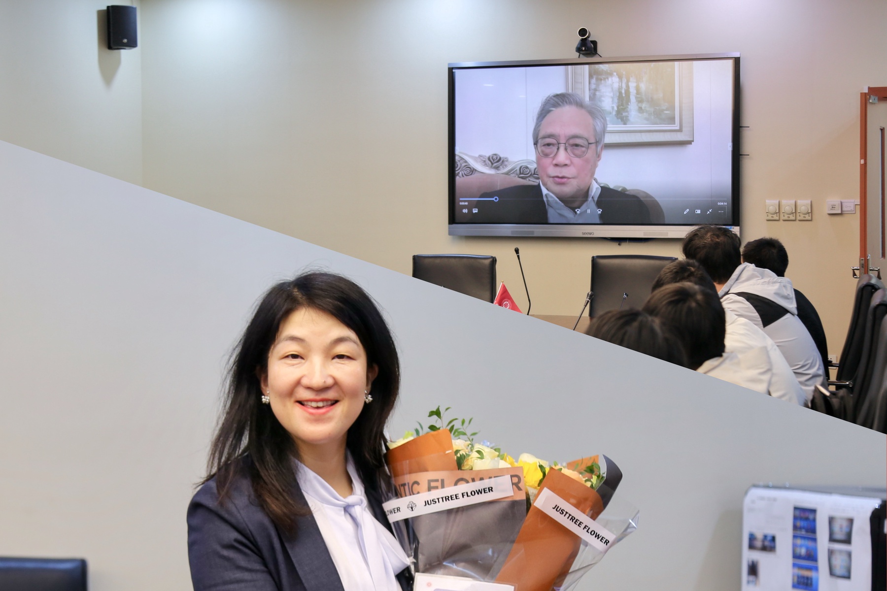 讲座伊始,何明老师即代表做爱视频向履新的张红老师表示祝贺并提出殷切期待,后由学生代表献花致意。现场还播放了张红老师的博士生导师、著名国际问题研究专家冯绍雷教授的寄语视频,令其深为惊喜与感动。