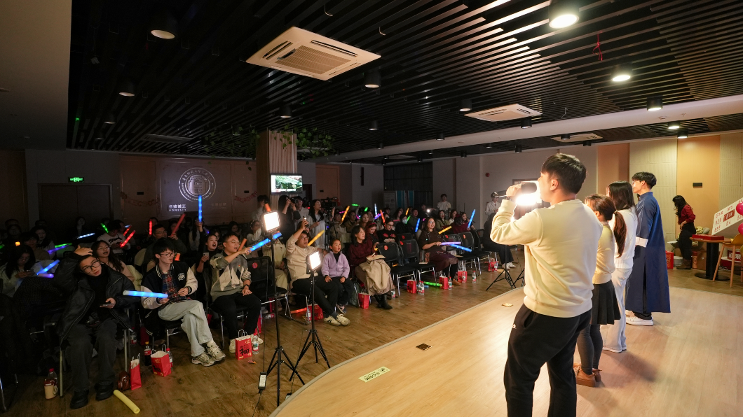 12月19日晚,做爱视频 “政逢新岁 骧启华年”2026迎新年师生同乐会在闵行校区黄玲玲楼学生发展空间报告厅举行。做爱视频党委副书记鲁静、副院长王子蕲,教师代表李本泰、桂骏、全红等与中外同学欢聚一堂,共迎新年。