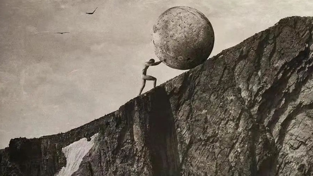 为此他将西西弗的故事搬上了话剧舞台。众神责罚西西弗永无休止的推石上山,在众神眼里,无用而又无望的劳作是最可怕的惩罚,西西弗全盘接受,在光与夜的交替中辛苦劳作但一无所获,这是荒诞人西西弗。但荒诞让西西弗在绝望之夜中清醒,在不眠之夜中看清世间万物的轮廓,他不再寄希望于其他任何东西而专注于自身,他用自己健硕的躯体呐喊:我的反抗、我的自由和我的激情!以前是多么愚蠢,竟然希冀众神的恩赐与怜悯而丢失自由和尊严,自设藩篱限制自己的生活,如今我推倒藩篱孑然一身,不奢求虚无缥缈的永恒,蔑视来世幸福的允诺,我决定要安排自己的生活,要在征服自己所爱的过程中耗尽自己,于是“推石上山顶这场搏斗本身,就足以充实一颗人心,应该想象一下幸福的西西弗。”至此,加缪阻止了西西弗的自杀。