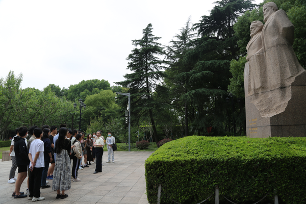 在参观聂耳、田汉雕像时,贝文力老师的“现场党课”讲述了聂耳、田汉的生平,以及《义勇军进行曲》《毕业歌》的创作历史。恒久传唱的词曲如跨越时空的桥梁,让师生们感受到了革命战争时期进步青年、知识分子深沉的爱国主义精神和革命乐观主义精神。